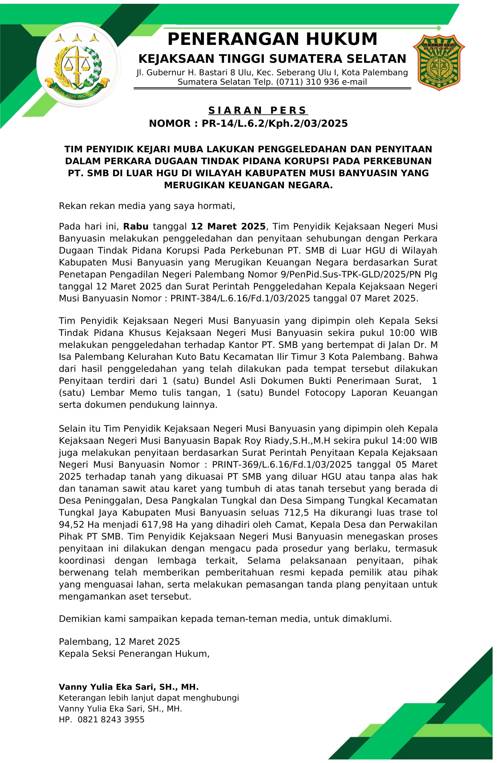Pengumuman Kejati Sumsel