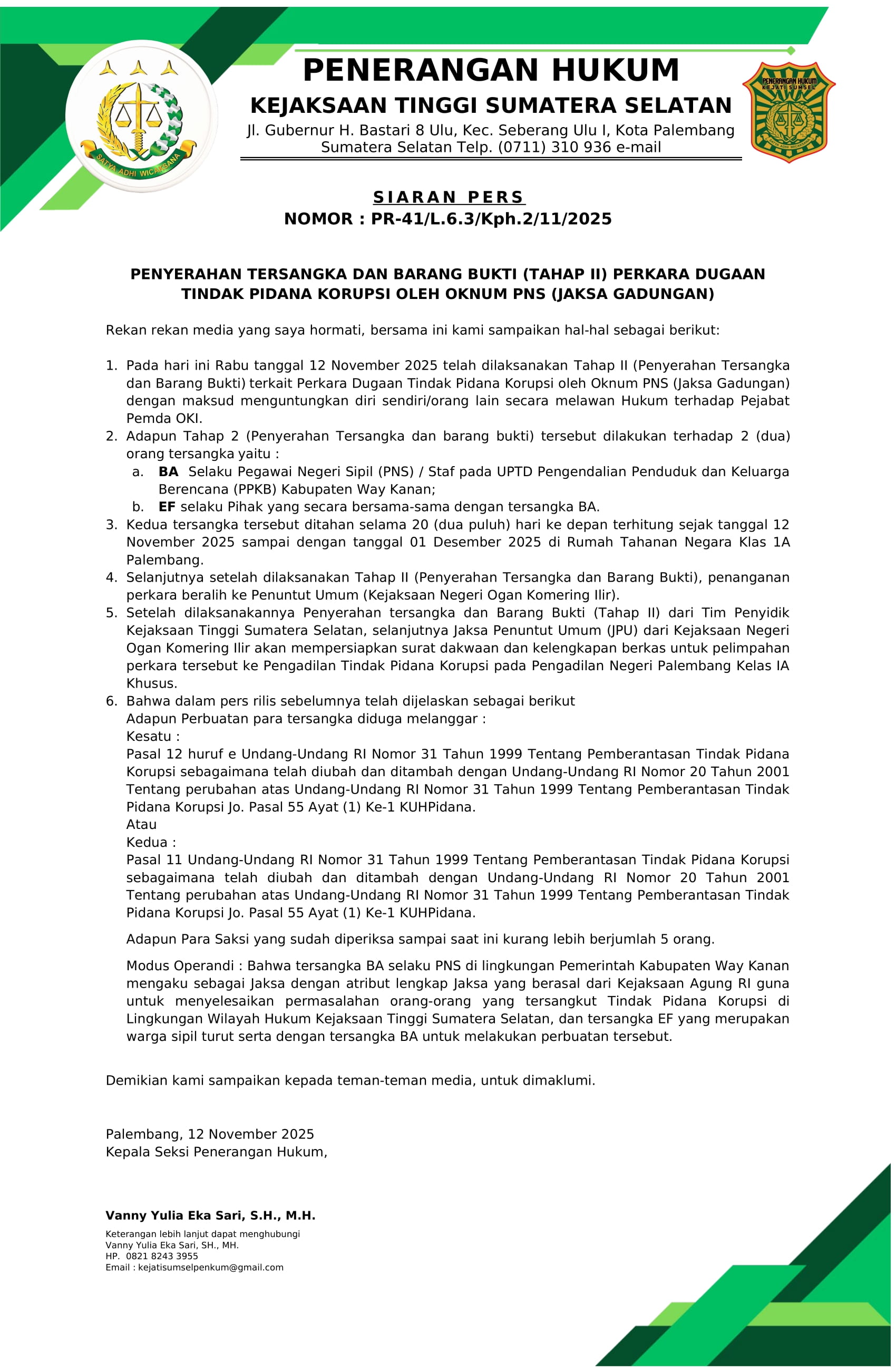 Pengumuman Kejati Sumsel